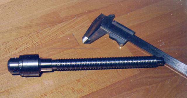 Spindel für den Reitstock einer Drechselbank. Bohrfutter-Aufnahme ist 1/2" X 20, Spindel ist M18 X 2,5